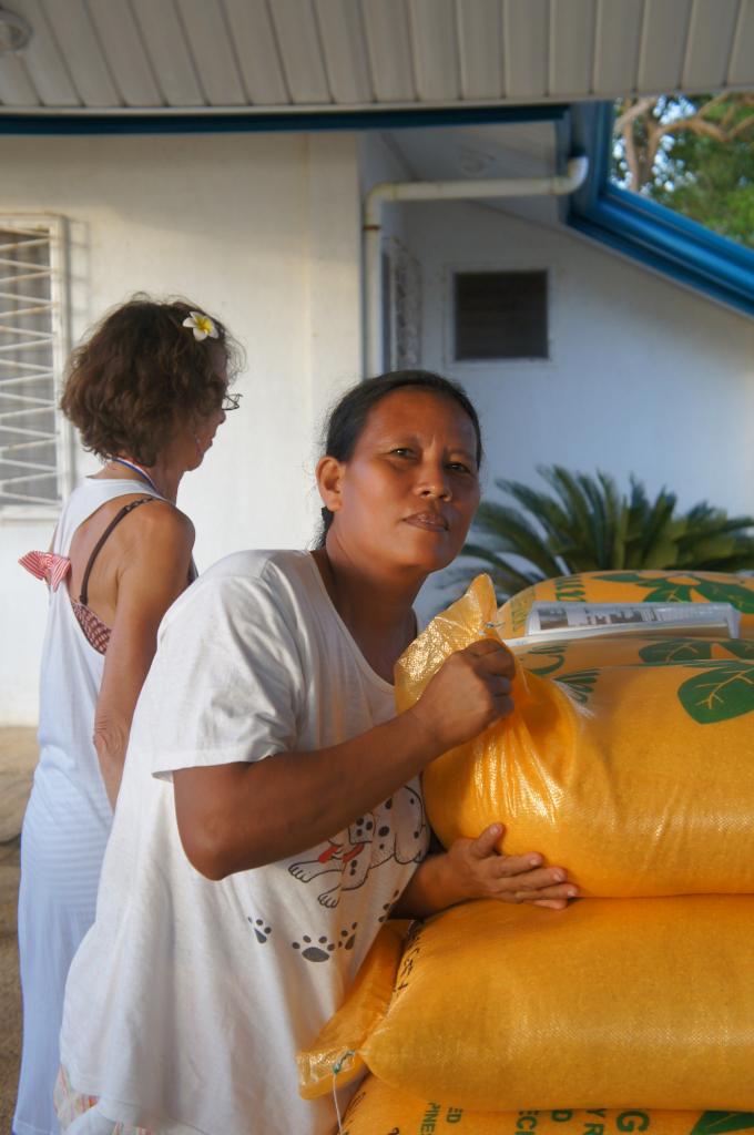 Clint Steven Mother recevant le sac de riz